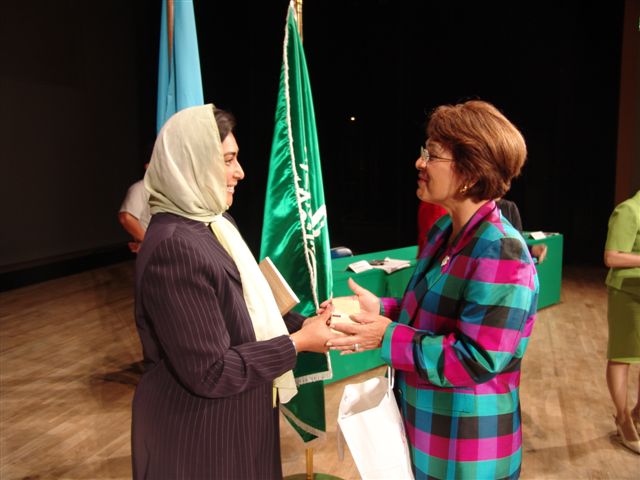 UN general sec presting Nimah with gift